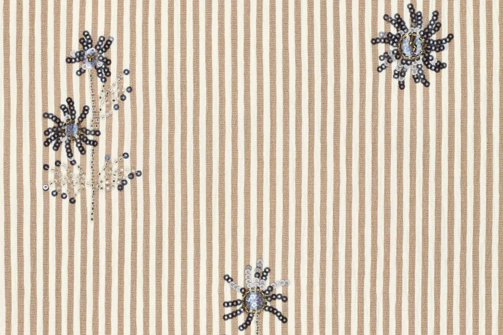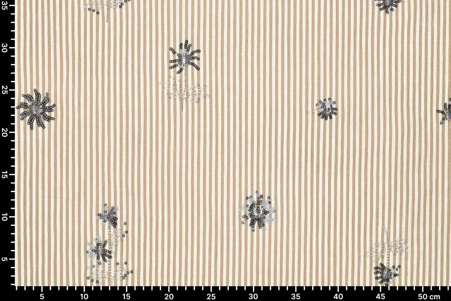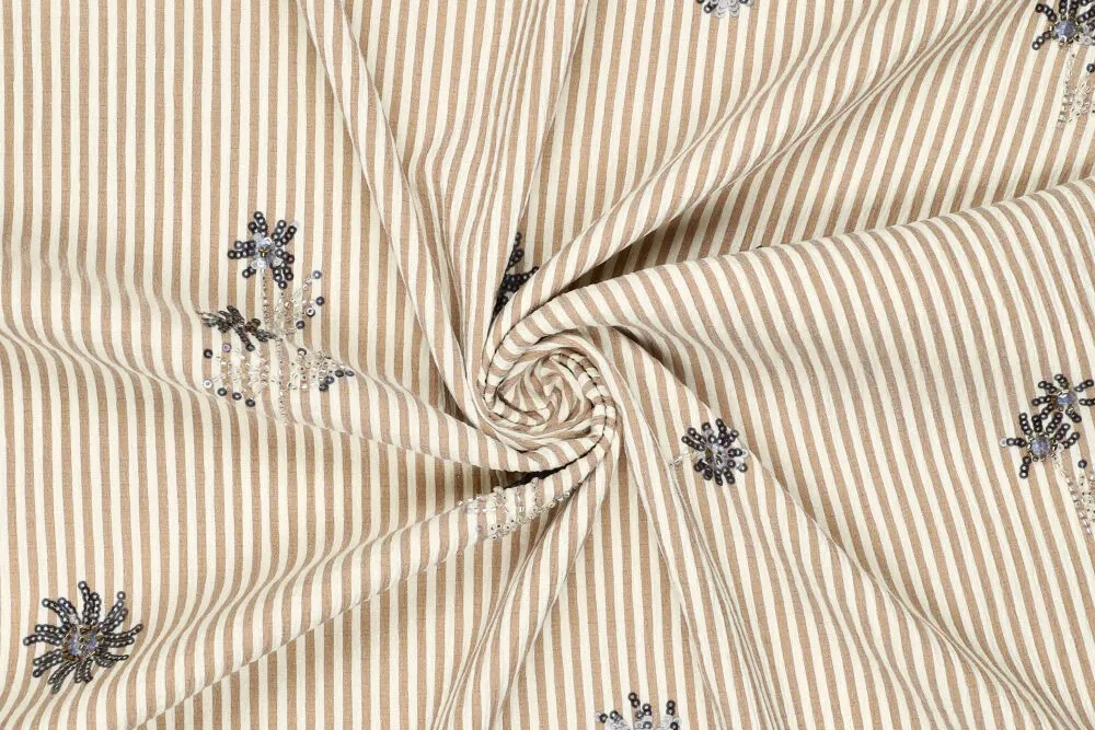 Mooie crinkel streep stof met embroidery pailletten met kraaltjes bloemen.