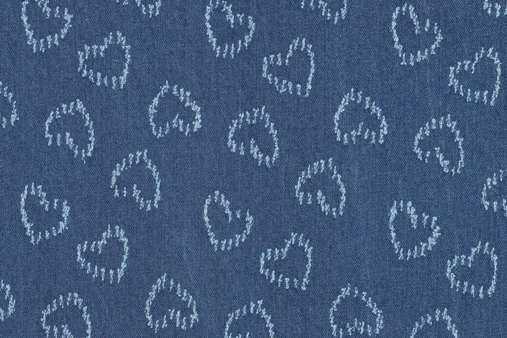 Denim jacquard stof, hartjes, jeansblauw. P525