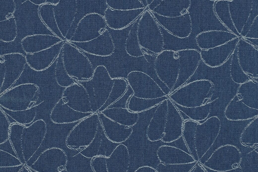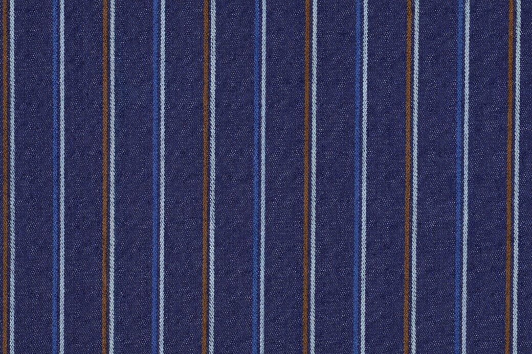Denim jacquard stof, strepen motief, blauw/camel. P163
