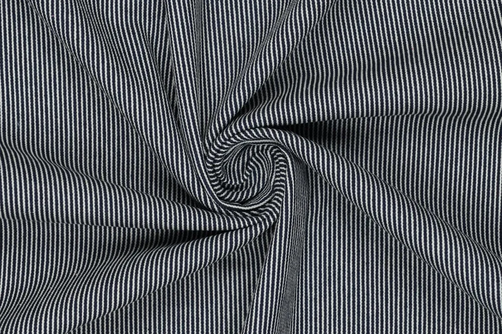 Denim stof, fijne streep, donkerblauw. P673