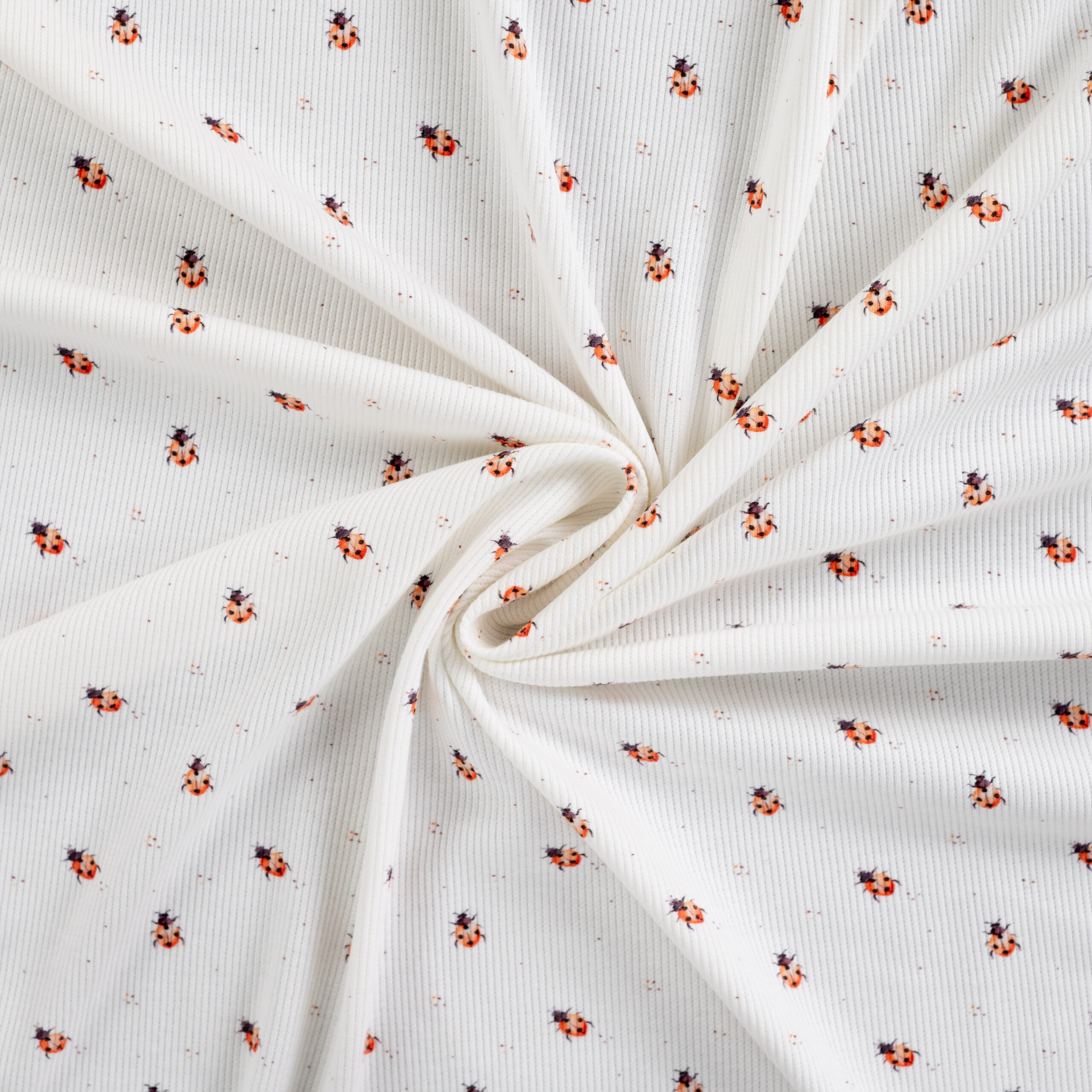 Fijne rib jersey stof, lieveheersbeestjesprint, offwhite/rood/zwart. P060