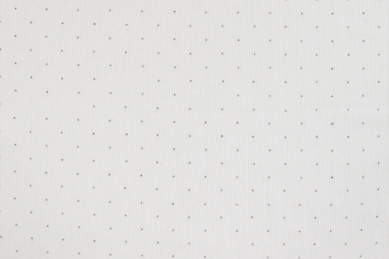 Fijne rib jersey stof, studs, ecru/zilver. P388