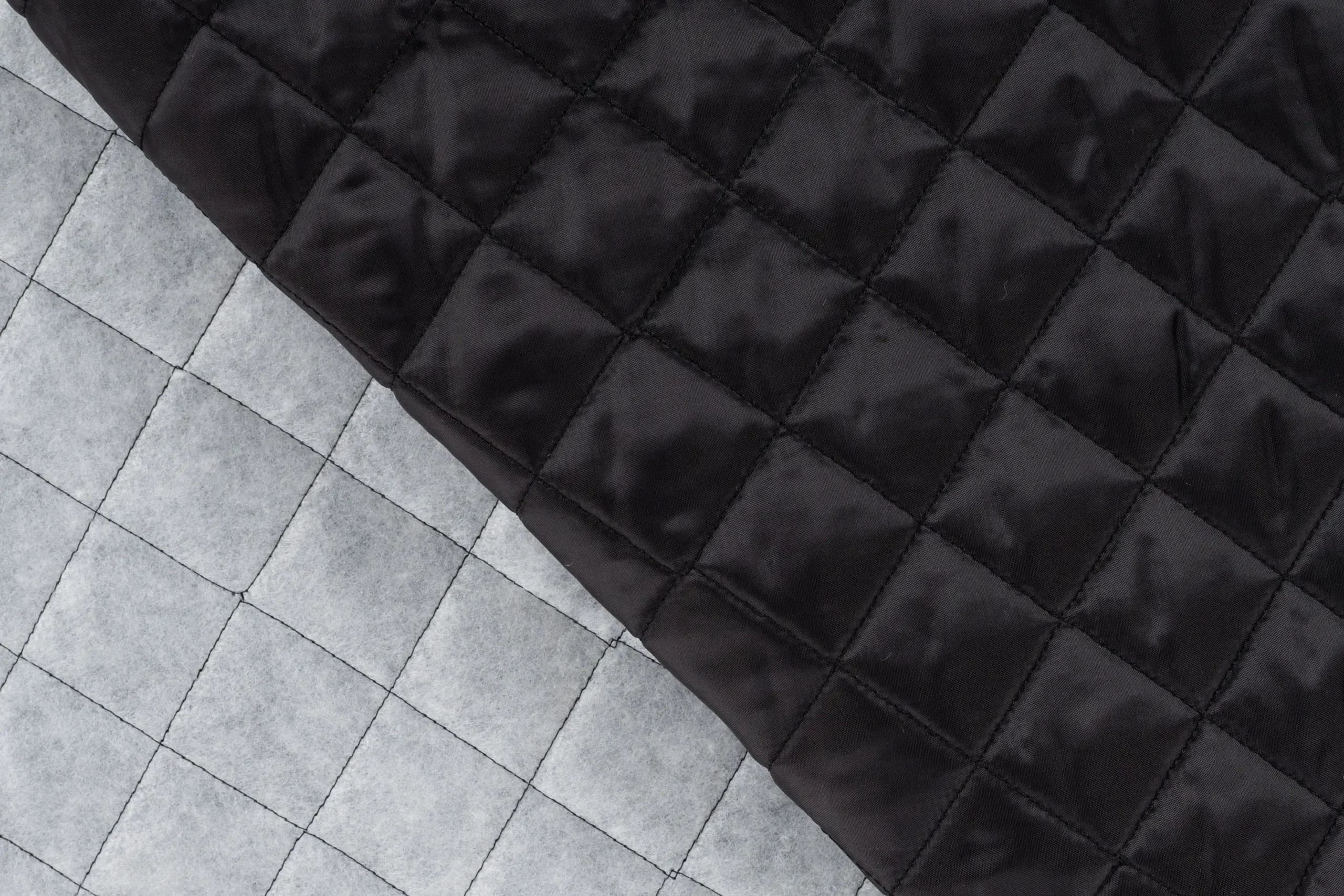 Gewatteerde stof, gestept, 2-laags. ruit motief, antraciet. GW680D