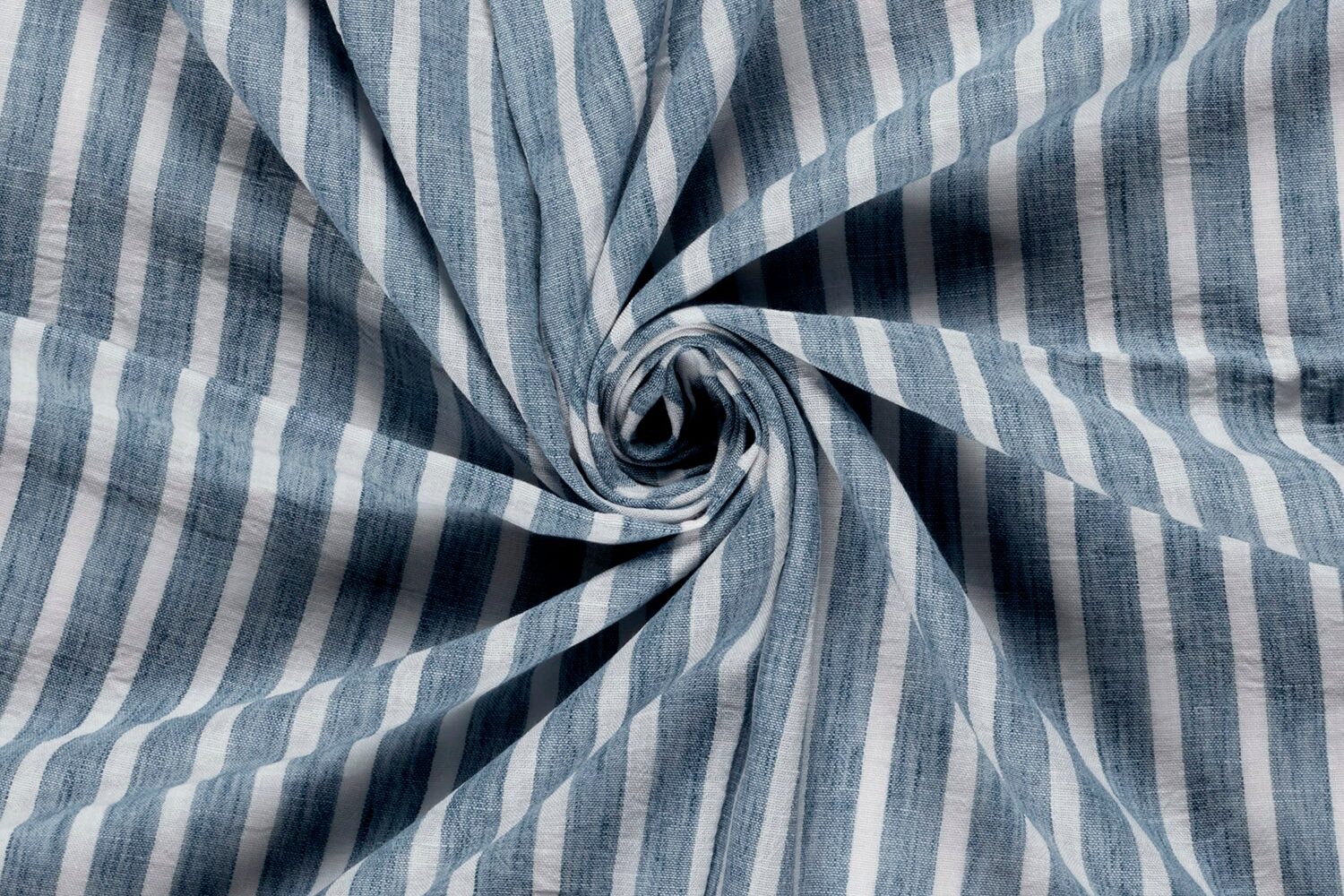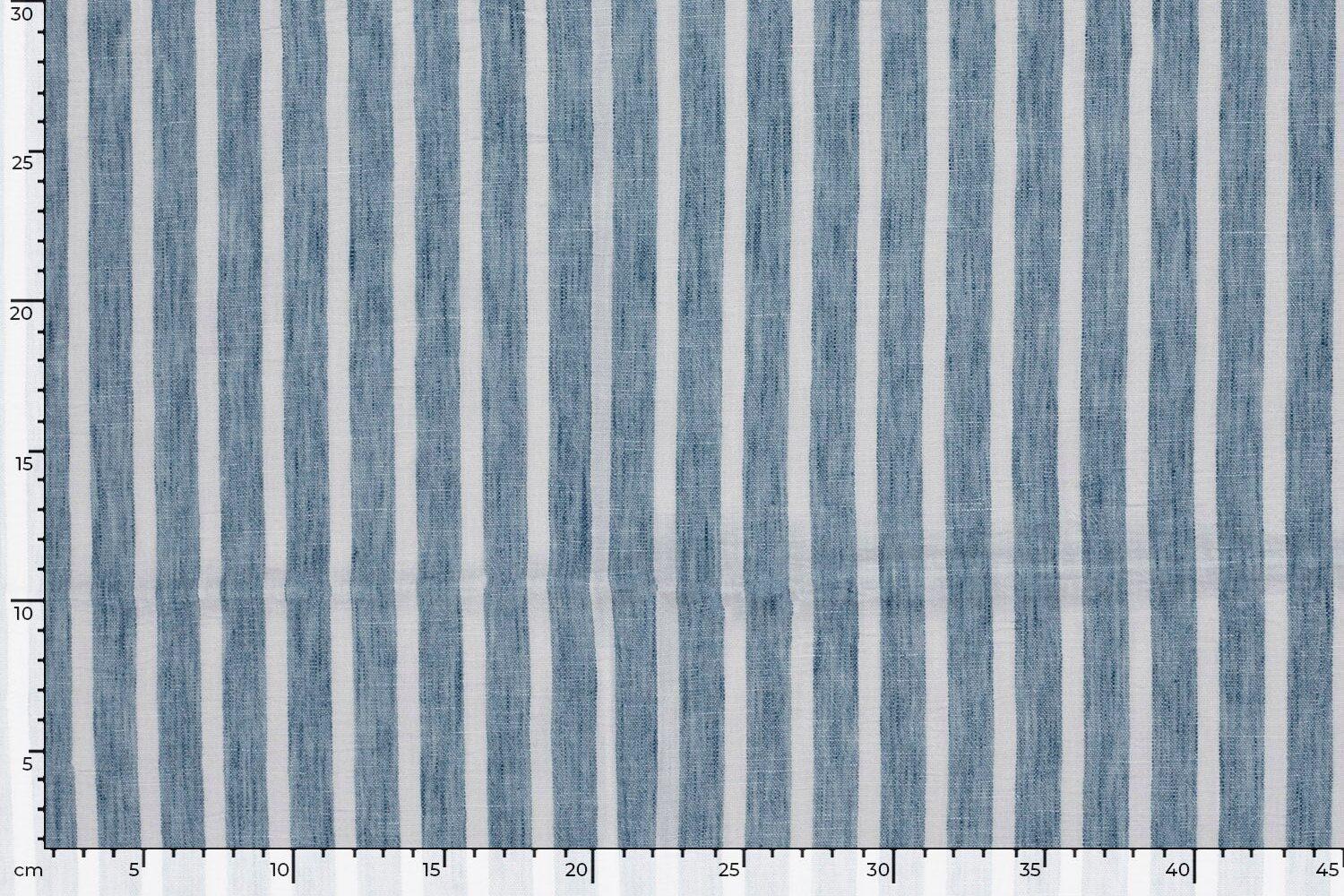 Linnen look stof, streep motief, melange, blauw/wit. P310