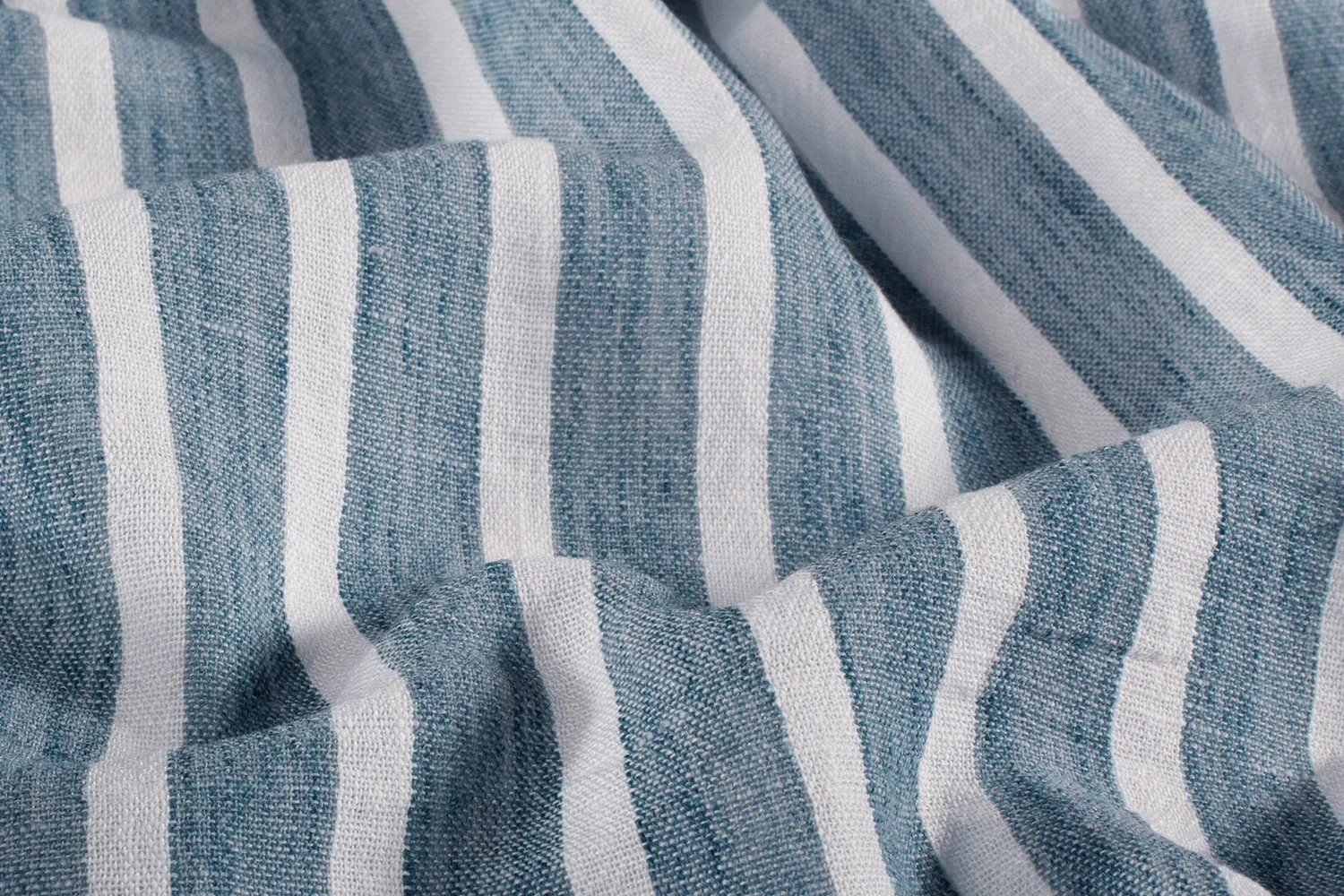 Mooie linnen look stof met een streep motief in een melange kleur.