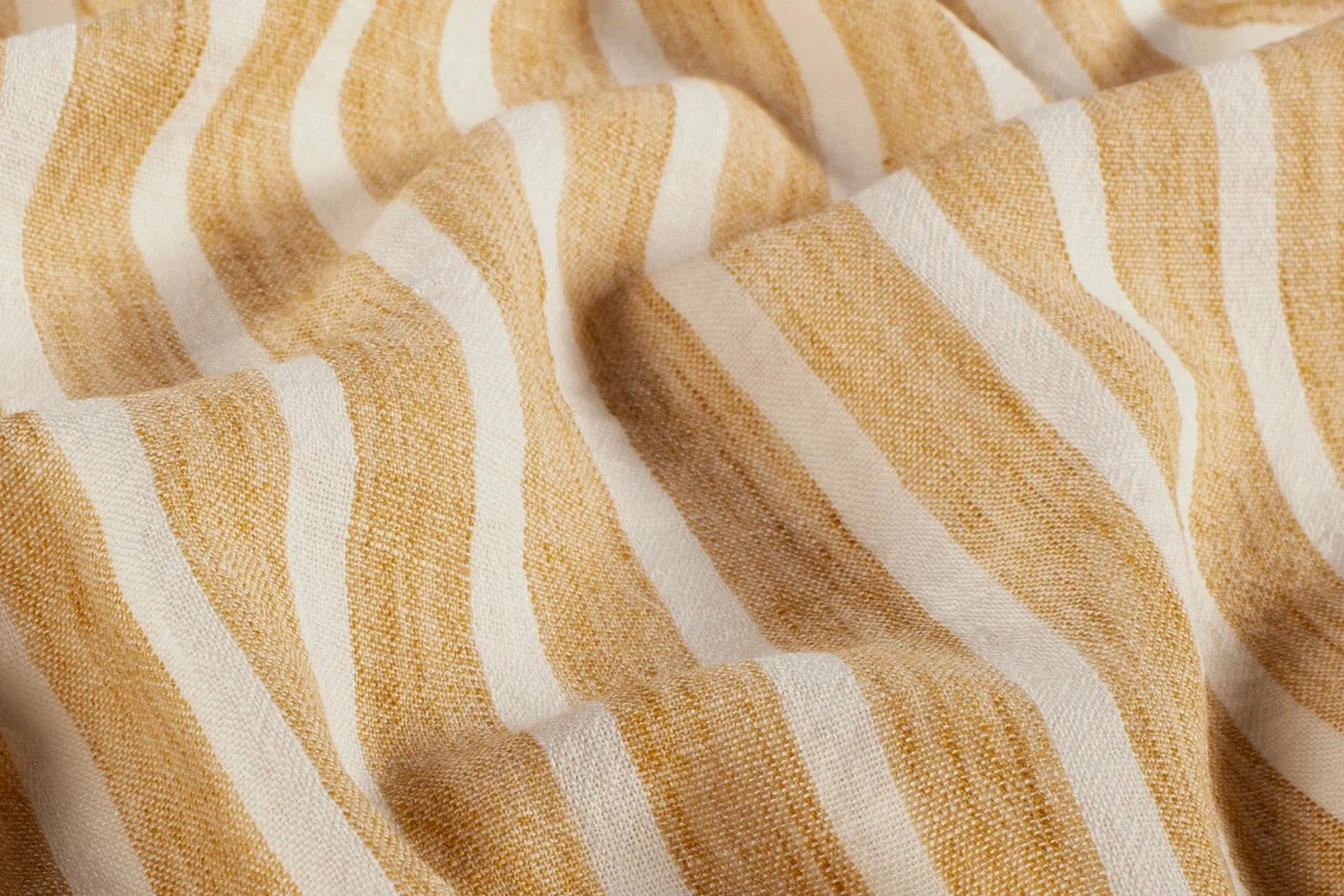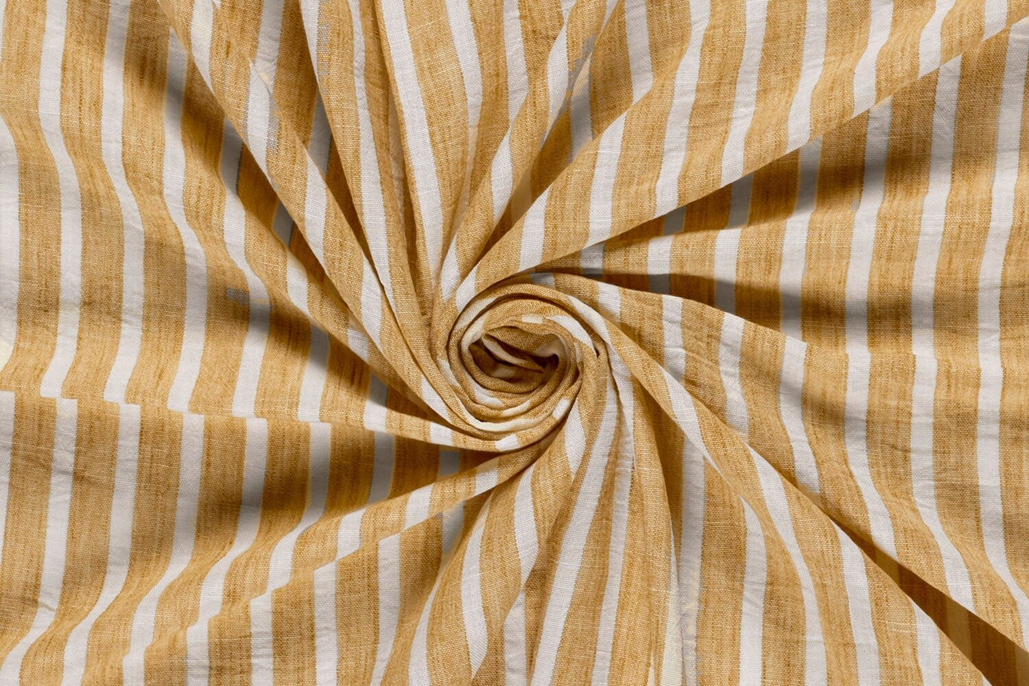Linnen look stof, streep motief, melange, geel/wit. P308