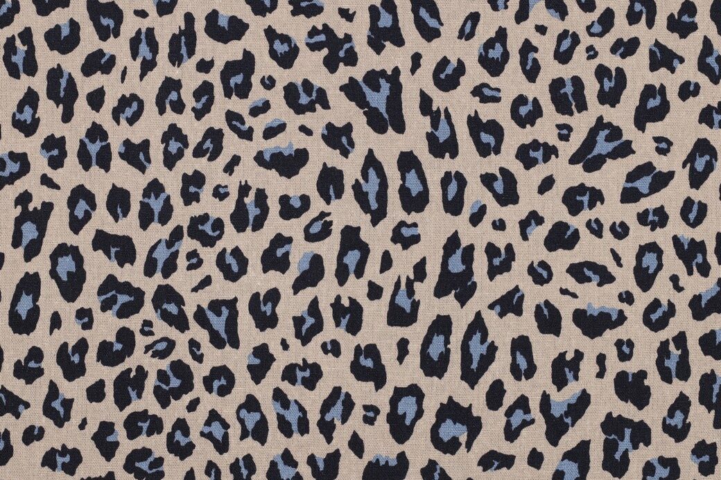 Linnen viscose stof, luipaard print, camel/blauw. P161