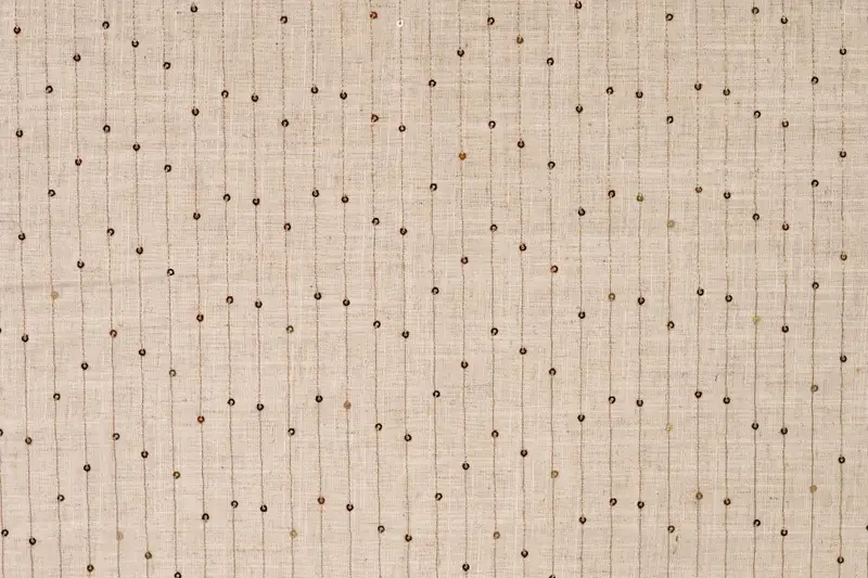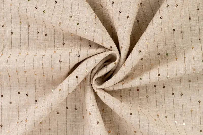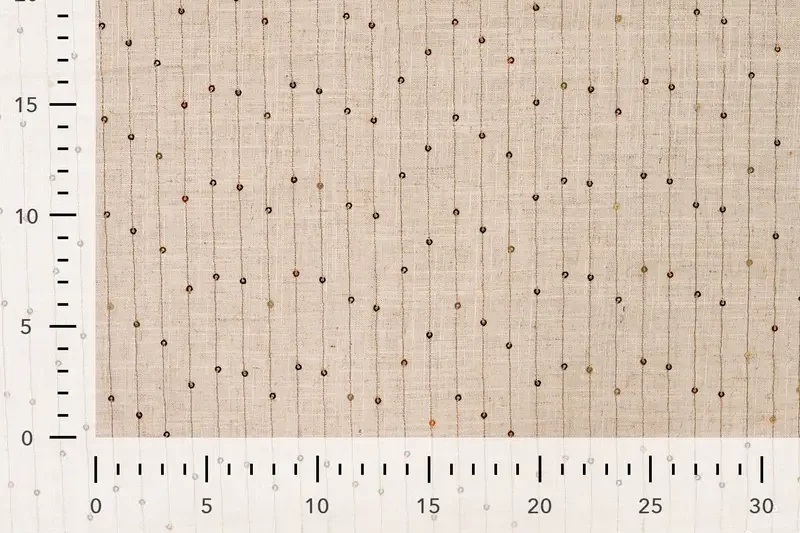 Mooie naturel linnen stof met gouden stiksels en pailletten.