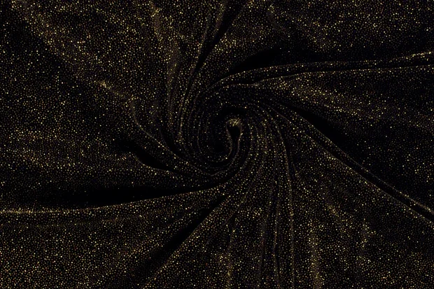 Poly jersey velours stof, glitters, zwart/goud. P115