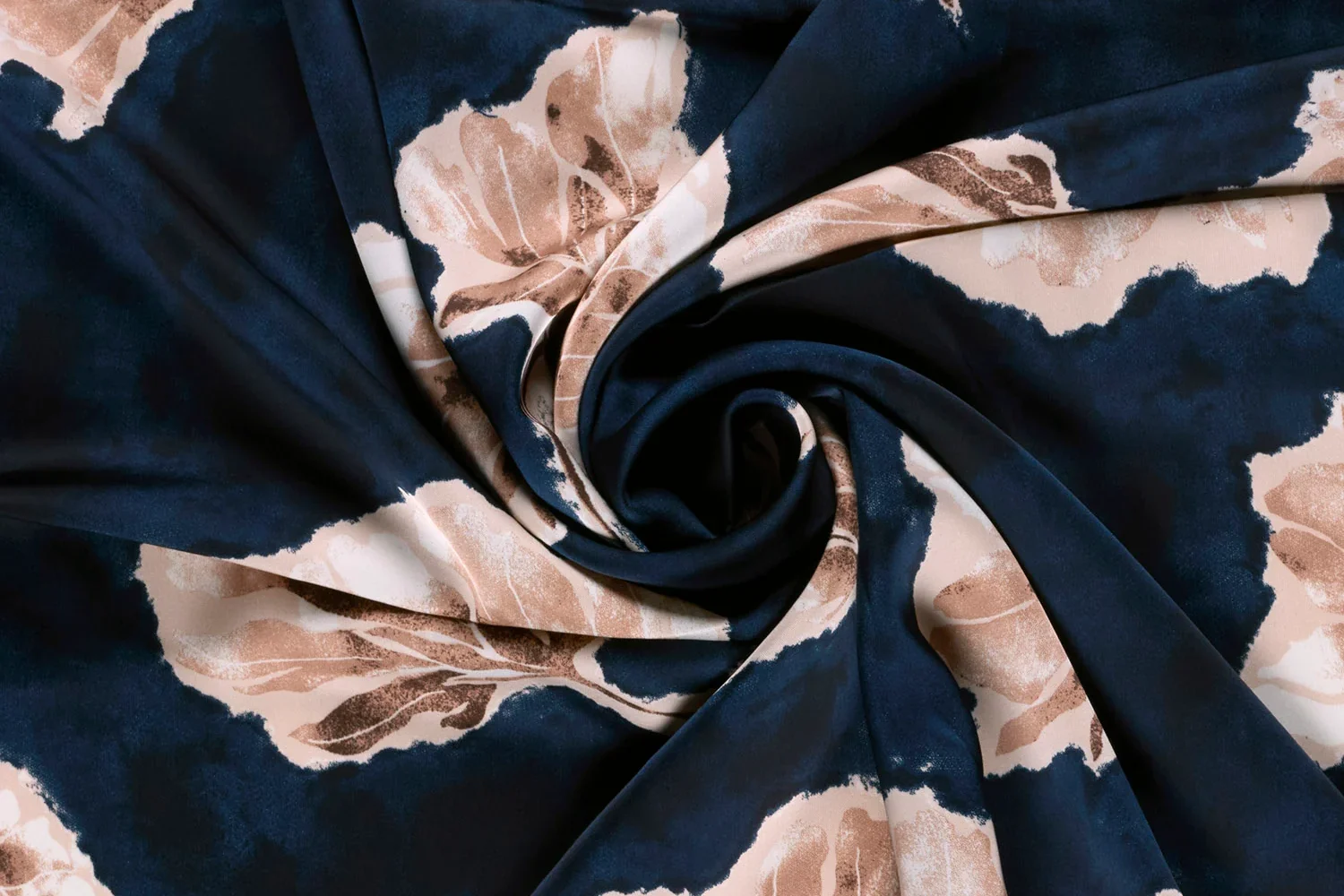 Mooie satijn de luxe stof met een grote bloembladprint.
