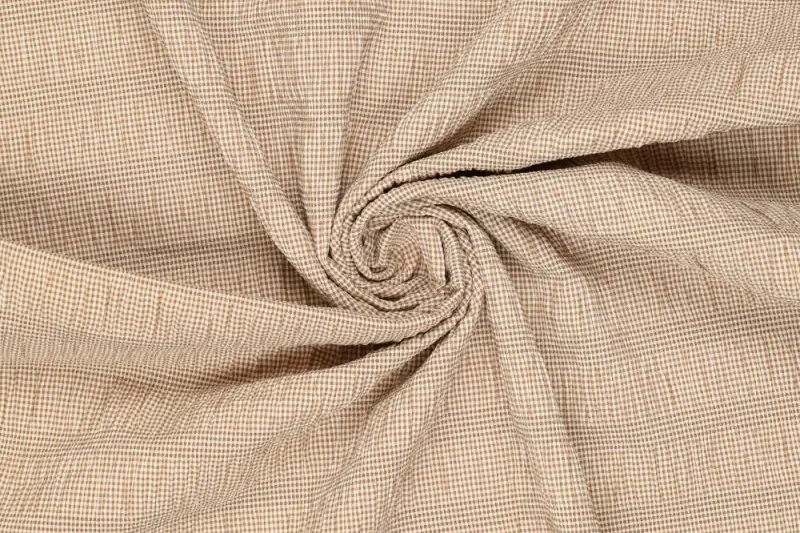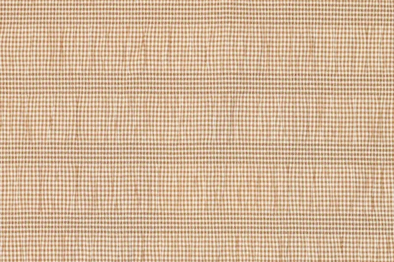 Seersucker smog stof, fijne ruit, lichtbruin/wit. P223
