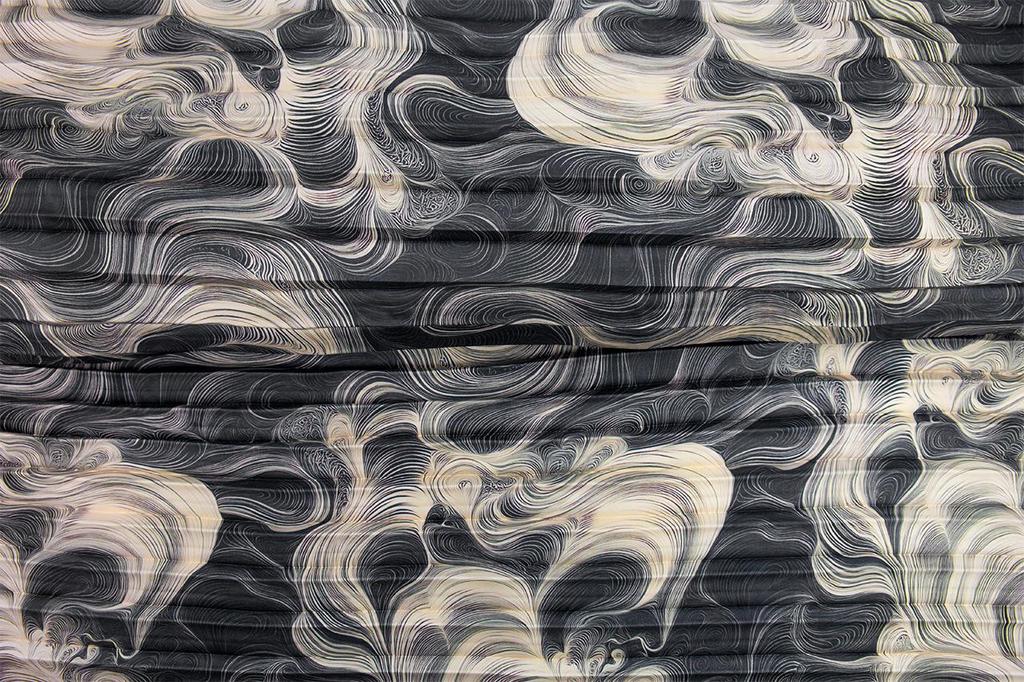 Stenzo plissé stof, fantasieprint, grijs/crème. P351