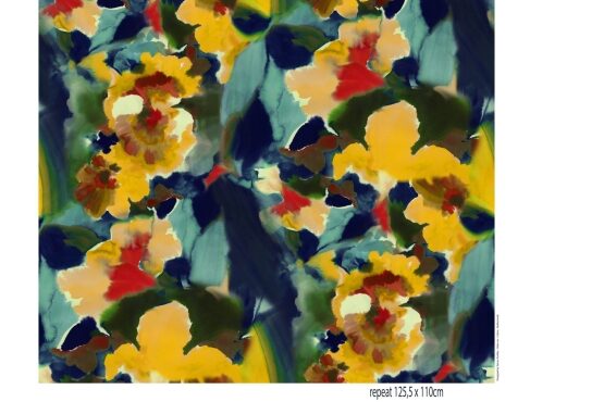Mooie viscose tricot stof met een digitale print van abstract van het merk Stenzo.