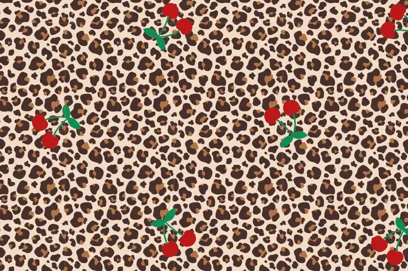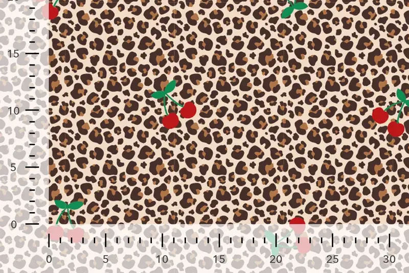 Mooie tricot katoen stof met een panterprint met kersen.