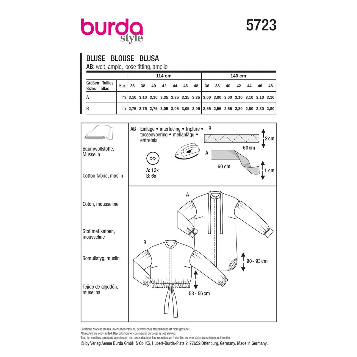 Burda Style, Naaipatroon Blouse 5723. maat 36 t/m 46