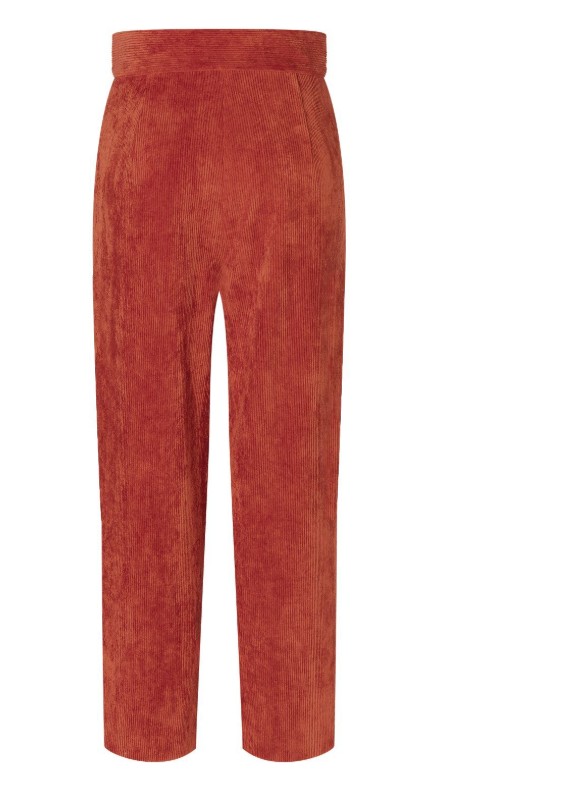 Broek variatie 1 is de perfecte fashion statement: het felgekleurde corduroy trekt de aandacht, terwijl de knoopsluiting aan de zijkant en de brede tailleband een stijlvol detail toevoegen.