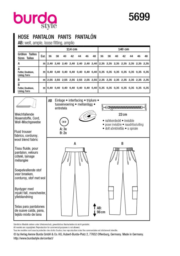 Burda Style, Naaipatroon broeken 5699. maat 36 tot en met maat 48