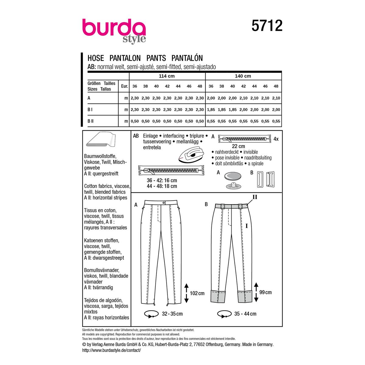 Burda Style, Naaipatroon broeken 5712 maat 36 tot en maat 48