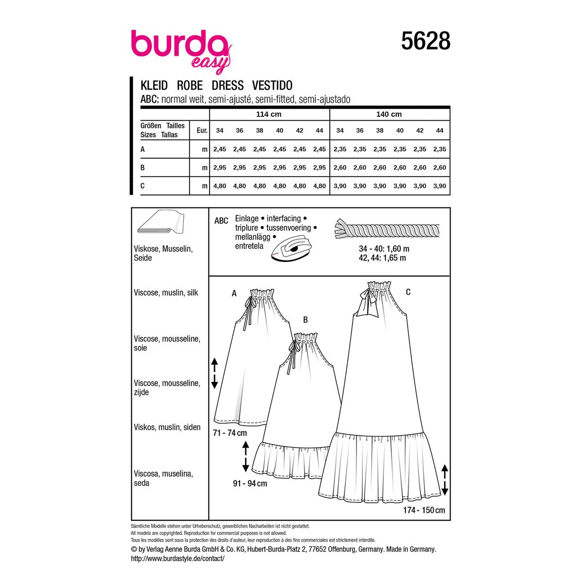 Burda Style, Naaipatroon jurk 5628 – maat 34 tot en met 44