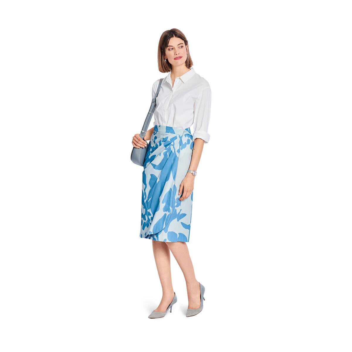Maak je zomerlook compleet met dit burda-stijl rokpatroon! De twee variaties bieden een veelzijdige wikkelrok: de eerste in sari-stijl heeft extra brede strikken en een binnenknoop, terwijl de tweede verrukt met een moderne bloemenprint, asymmetrische plooien en een brede tailleband zonder dikke strikken. Perfect om te combineren met een badpak of elegant gestyled met een zijden top en hoge hakken!