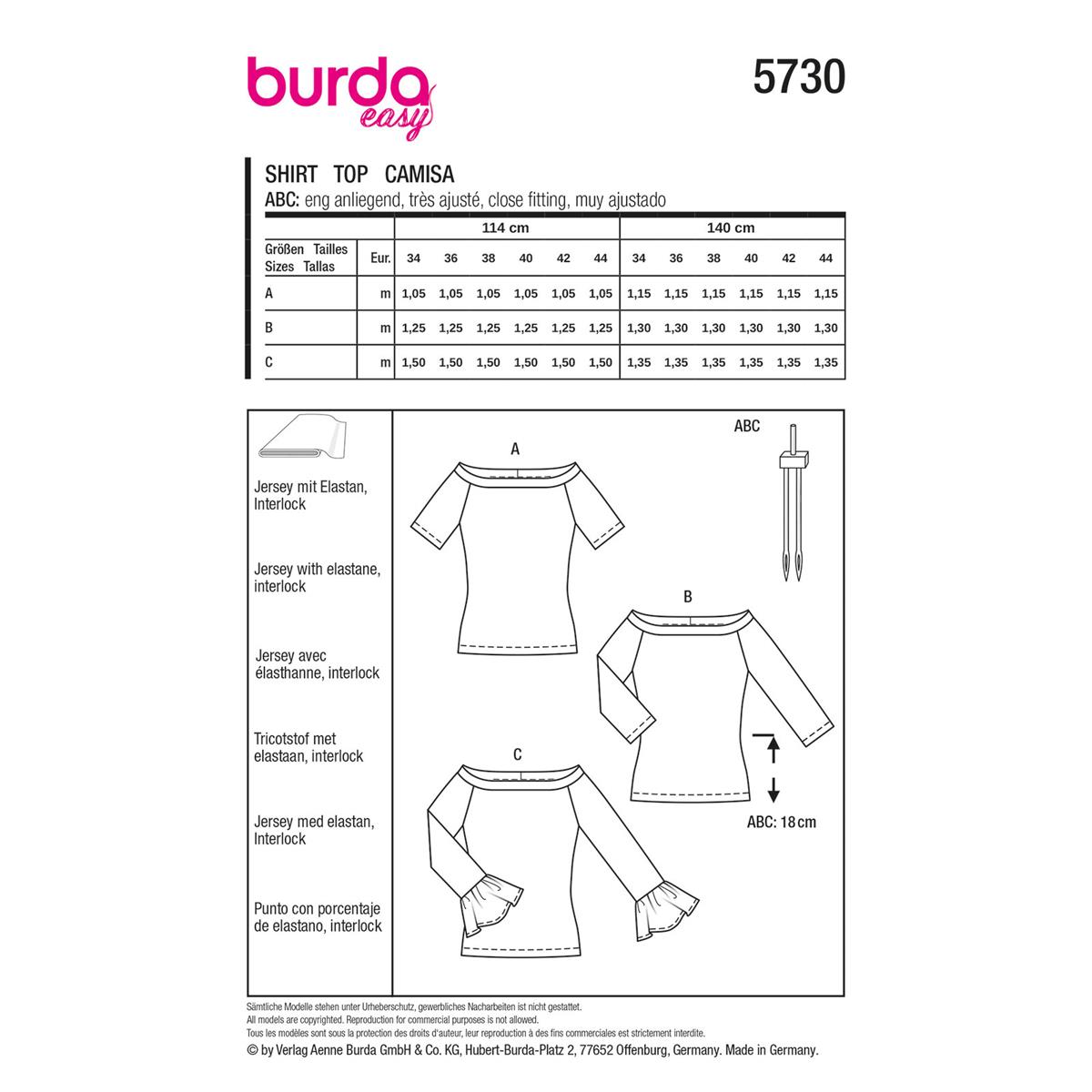 Burda Style, Naaipatroon Top 5730 maat 34 t/m 44
