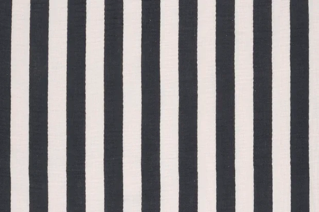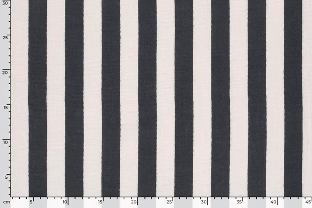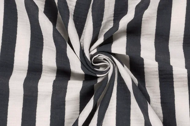 Fijne mousseline stof met een streep motief in diverse kleuren.