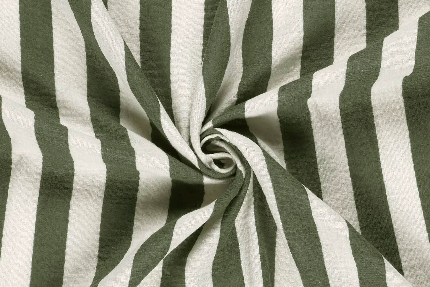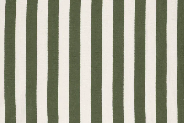 Mousseline stof, streep motief, offwhite/groen. P719