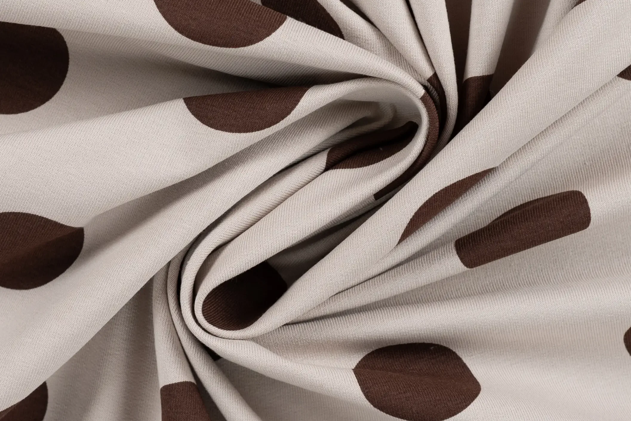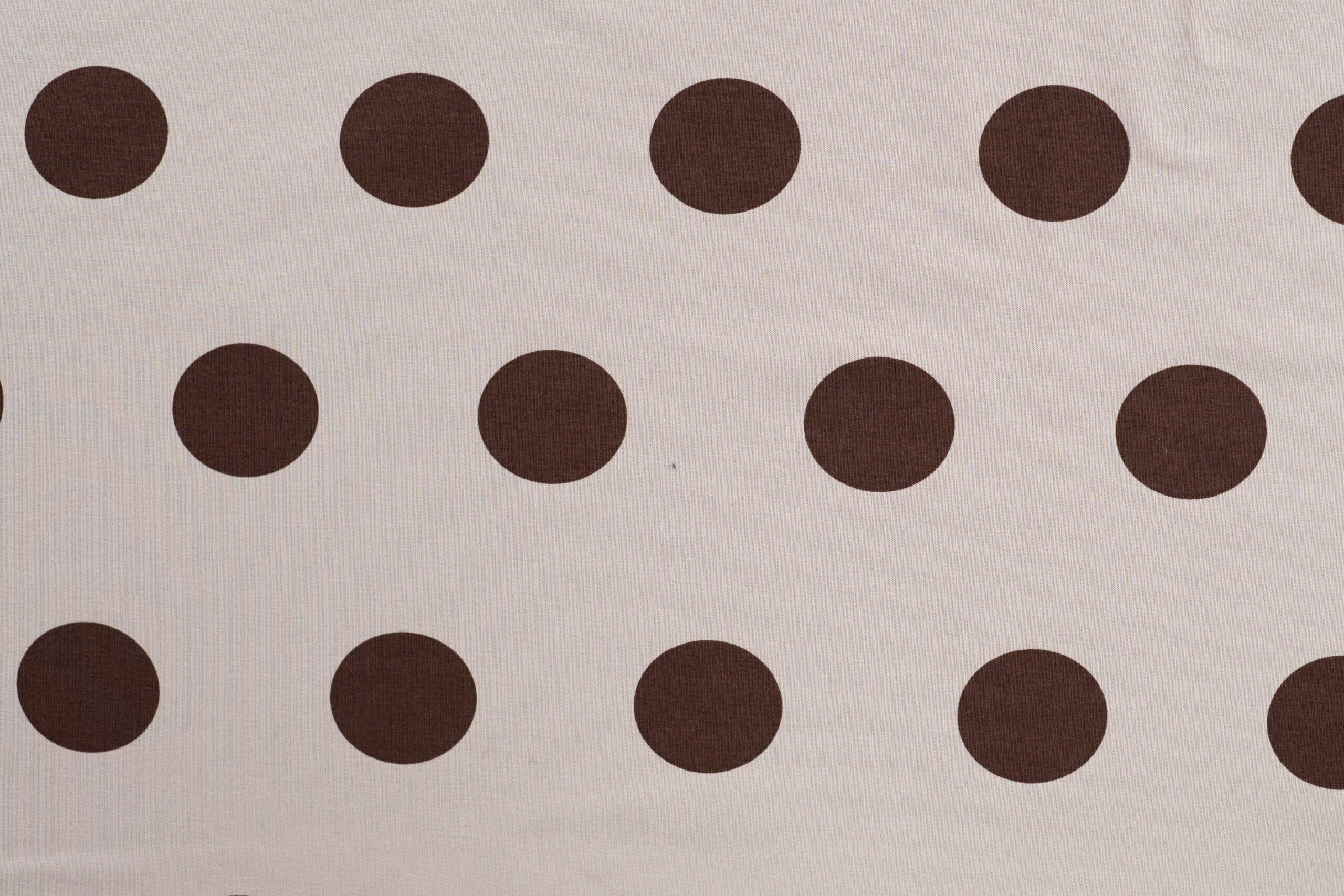 French terry stof, grote stippenprint, bruin/zand. P647