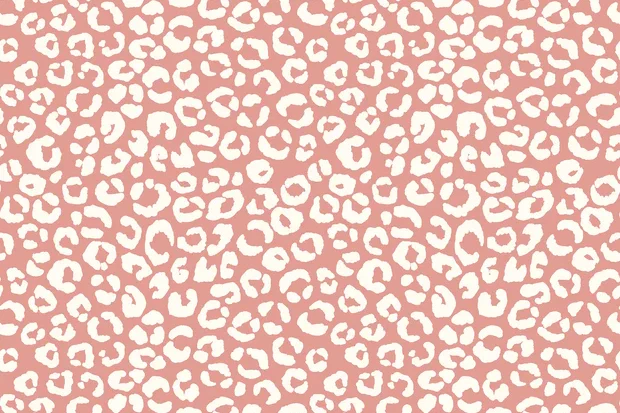 Katoen poplin stof, fijne panterprint, zalm/crème. P487