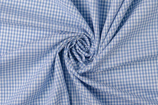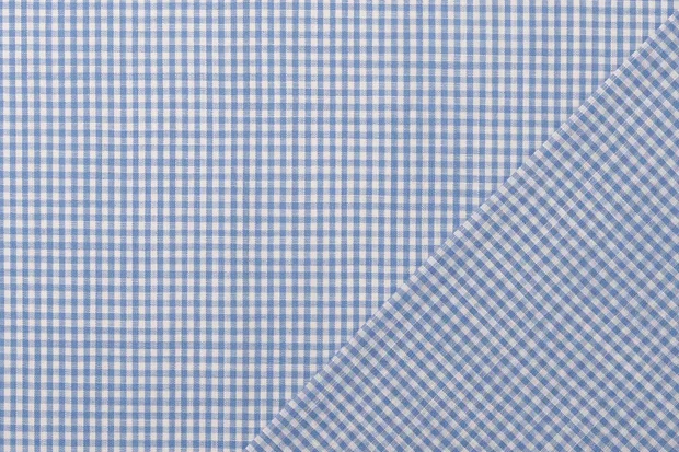 Katoen poplin stof, ruit motief, blauw/wit. P728