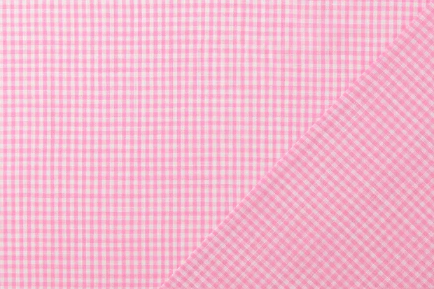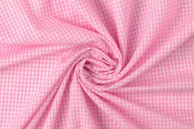 Katoen poplin stof, ruit motief, roze/wit. P729