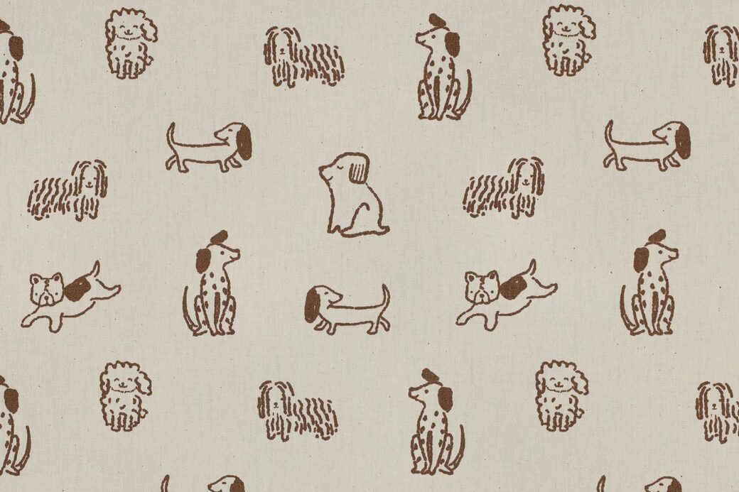 Poplin katoen stof, GOTS, hondjesprint, naturel/bruin. P624