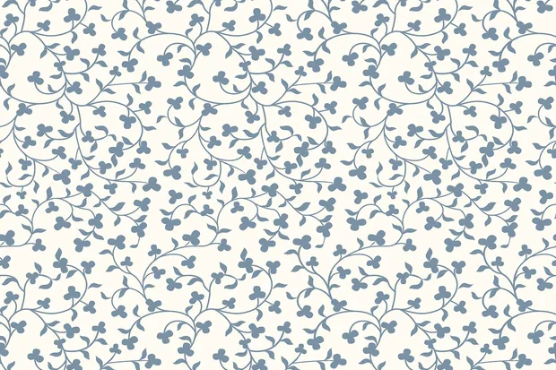 Poplin katoen stof, getekende droogbloemenprint, oudblauw/offwhite. P455