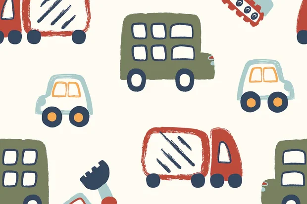 Mooie poplin katoen stof met een print van diverse voertuigen.