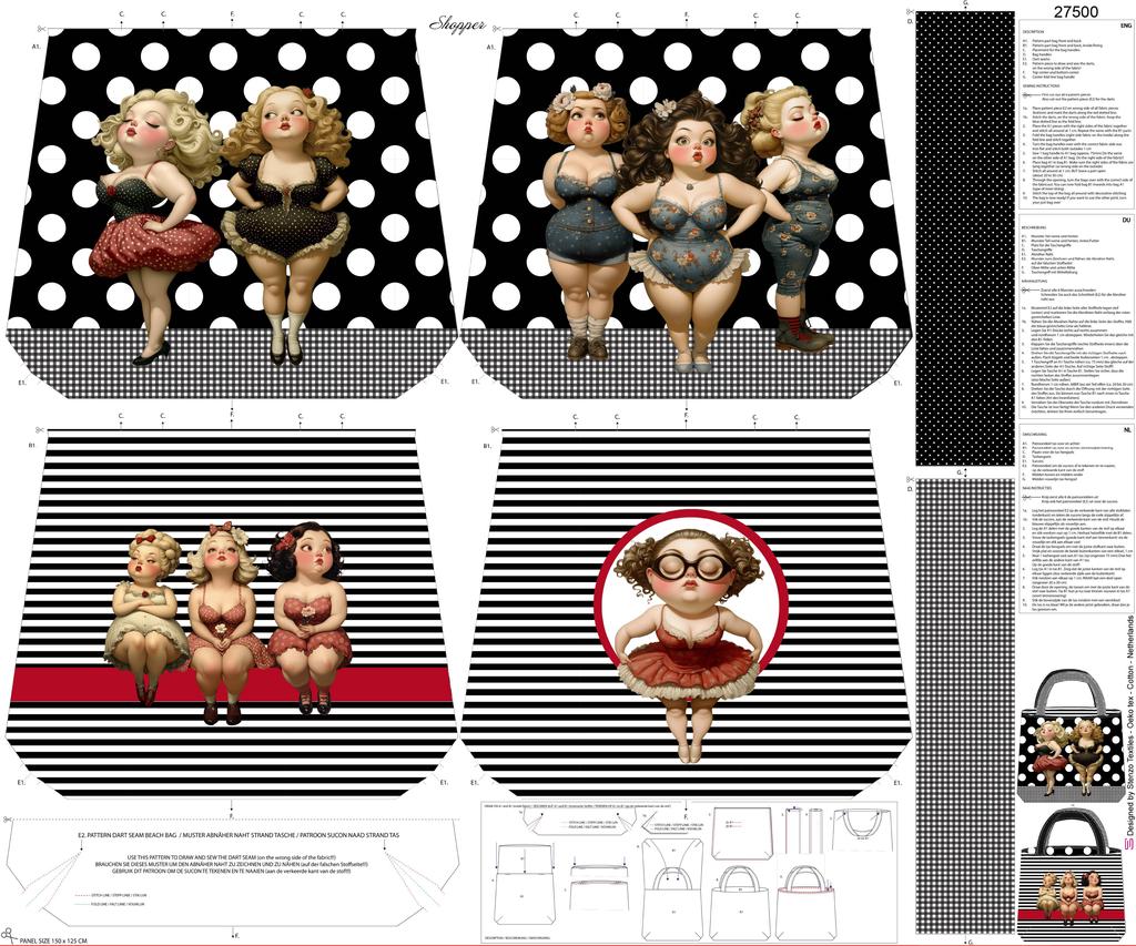 Mooie panel stof met een print van curvy dames van het merk Stenzo.