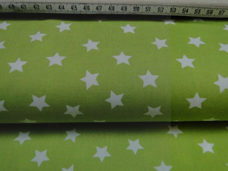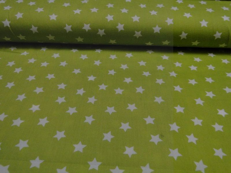 Poplin stof lime met witte sterren, SM024