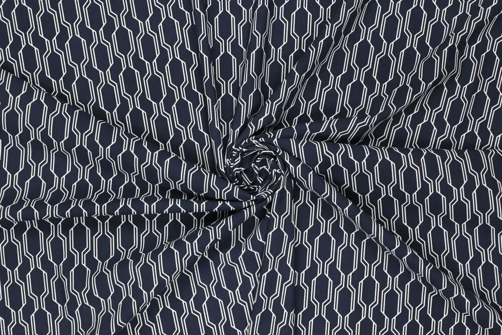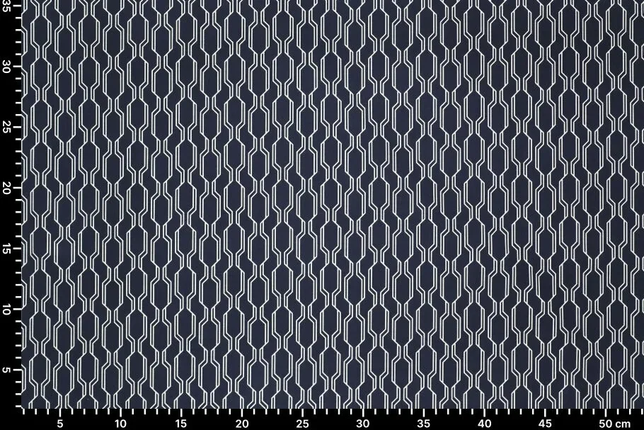 Travel stof, rivo print, donkerblauw/offwhite. P681